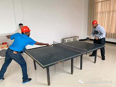 客户对中国体育非常感兴趣,经过乒乓球台的时候,顺便打了几局。