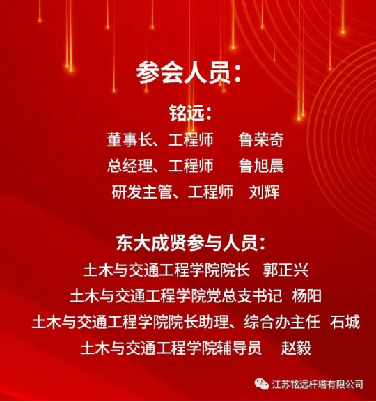 鲁荣奇董事长对东南大学成贤学院土木与交通工程学院选择铭远作为实习就业基地表示感谢,建立实习就业基地是提升铭远管理队伍,素质,培养高精英人才的重要举措,未来将深化校企合作机制,全力为东南大学成贤学院土木与交通工程学院提供全方位的实训就业保障。